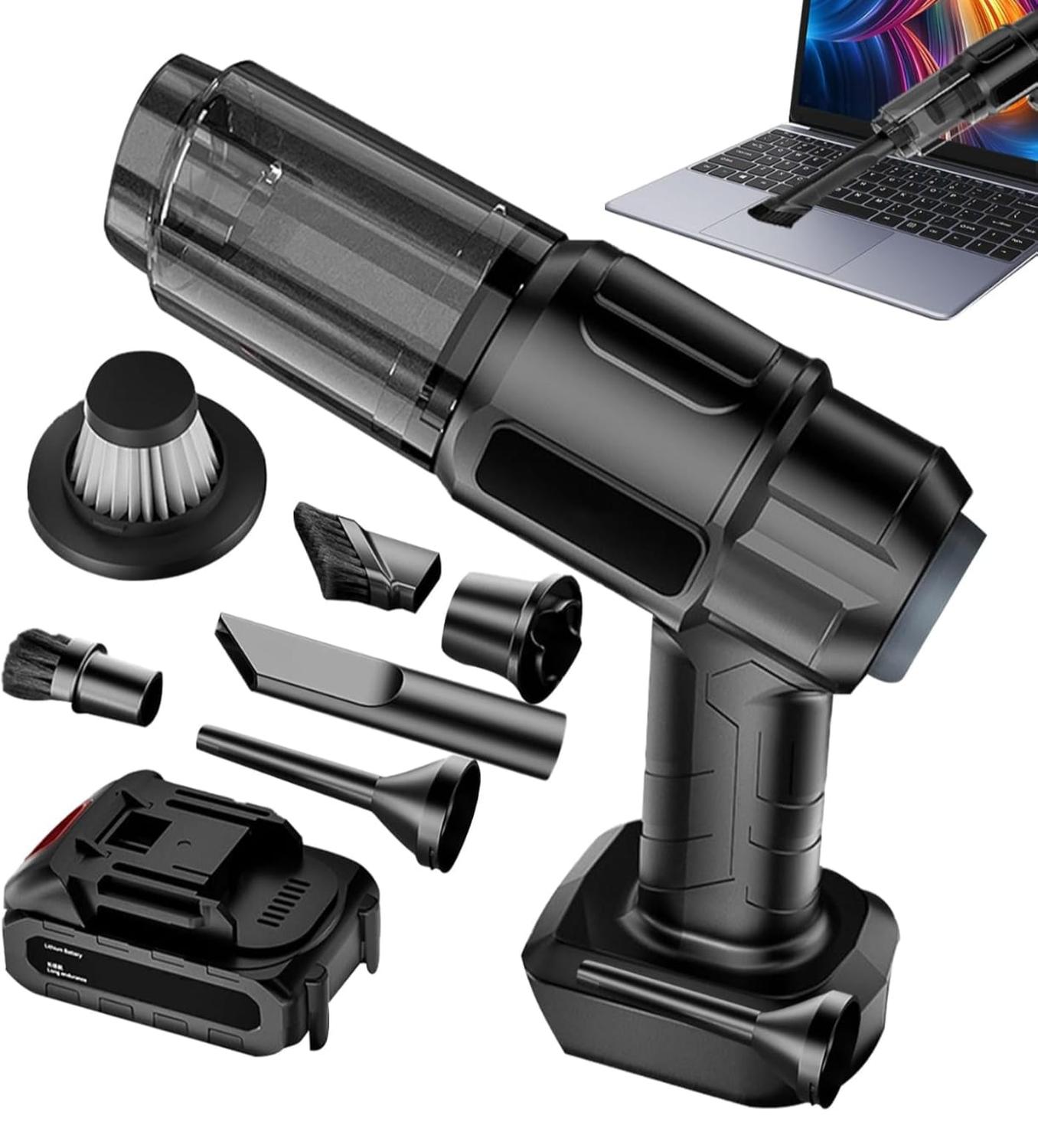 Kit Aspiradora Pistola Portátil Inalámbrica Auto Hogar 120w\n\nCon batería integrada de 2000mah e interfaz de recarga USB, la aspiradora de coche inalámbrico puede soportar aproximadamente 25 minutos de tiempo de trabajo, sin limitación de cable de alimentación, fácil de operar durante el tiempo de limpieza.\n\nLa aspiradora de auto inalámbrico está diseñada con una luz led, conveniente para iluminar el entorno oscuro para un mejor rendimiento de limpieza.\n\nLa aspiradora de auto inalámbrico tiene una estructura desmontable, fácil de limpiar el filtro interno, conveniente para el uso diario.\n\nCon un motor de alta calidad, la aspiradora de coche inalámbrico puede proporcionar una fuerte potencia de succión de 4500pa y silenciar la experiencia de uso al mismo tiempo.\n\nSucción duradera, sin disminución, efectiva y rápida, estable y de poco ruido; Sofás, sábanas, alfombras pueden eliminar el polvo fácilmente, lo cual es práctico y ahorra trabajo. Los cojines, la arena de la alfombra, el polvo flotante, etc. se pueden limpiar fácilmente por su socio del auto.\n\nTamaño pequeño, gran succión, gran succión de 4500PA.