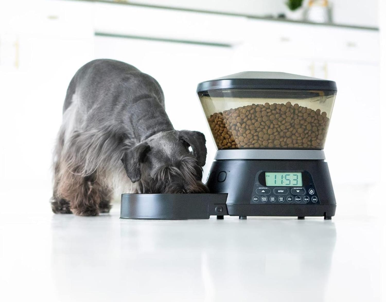 Alimentación para perros o gatos hecha conveniente: elija entre 6 comidas y cantidades actuales, o programa 6 propio. Haz largos días en el trabajo, alimentación temprana, control de porciones sin estrés con este comedero duradero de alta calidad para gatos o perros con cuenco integrado para comida para perros\nDiseño único a prueba de atascos: con tecnología de dispensación de alimentos superior que detecta y evita atascos no comunes en otros comederos automáticos para gatos o comederos para perros. Debe conectarse a la toma de corriente para el uso diario; 4 pilas AA alimentan Nano en caso de corte de energía\nMantiene los alimentos para mascotas frescos: el color más oscuro del compartimento de almacenamiento limita la exposición a la luz, mientras que los sellos de aire patentados Gamma2 bloquean la frescura y mantienen la humedad fuera. Se dobla como un recipiente de almacenamiento de alimentos para gatos o perros y mide solo 8 pulgadas de ancho x 18.1 pulgadas de largo x 12.5 pulgadas de alto\nControl preciso de porciones: una báscula digital interna garantiza que se dispensa la cantidad correcta de alimentos; la capacidad de 7.5 lb permite alimentar a múltiples mascotas. Cuenta con un modo de alimentación lenta para controlar el comer en exceso por parte de los comedores rápidos, una gran alternativa a los tazones de comida para gatos o perros
