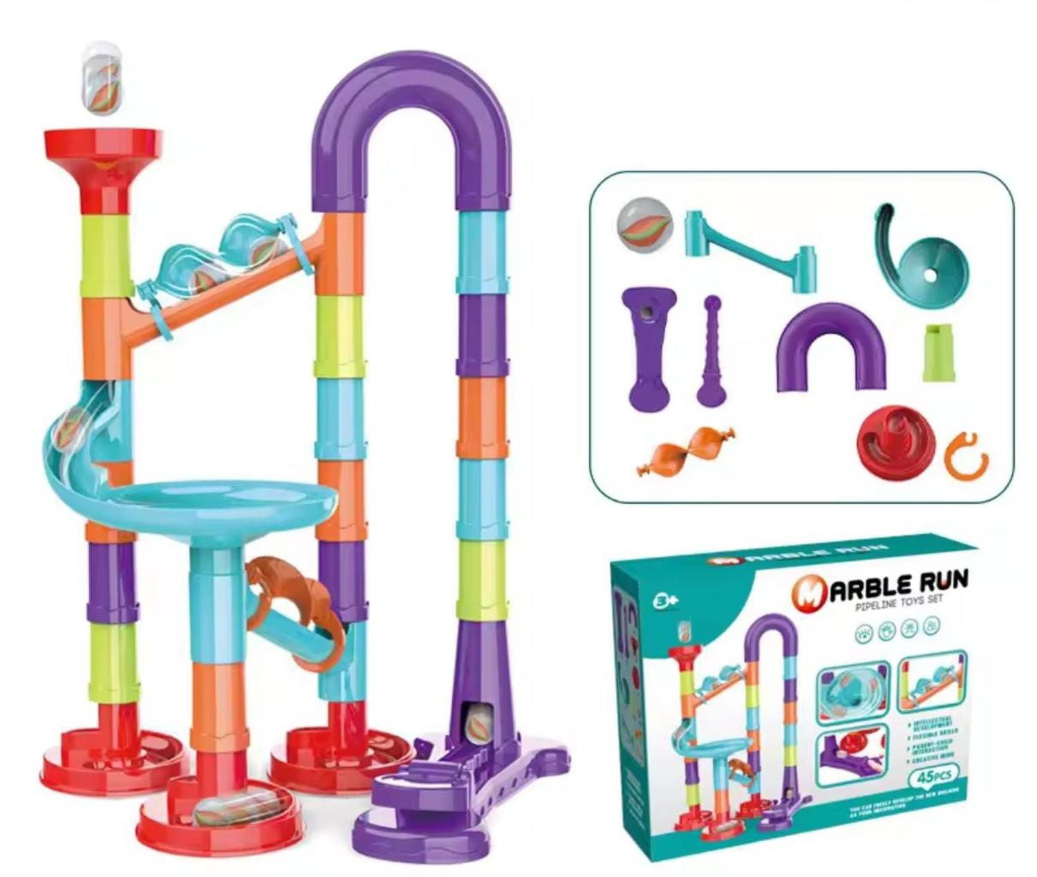 Juego de laberinto de bloques de construcción 3D: la carrera de bloques de construcción que los niños pueden ensamblar de diferentes maneras para desarrollar su creatividad, pensamiento lógico, coordinación ojo-mano, jugar y ganar capacidad de paciente y resolución de problemas. Excelente regalo para todos los niños, especialmente juguetes adecuados para niños de prekínder garten. Impresionantes regalos para cumpleaños, fiestas, Navidad y cualquier festival. La carrera de mármol contiene canicas más pequeñas, los \n\nniños menores de 6 años necesitan jugar con un adulto.\nAumenta las habilidades cognitivas de los niños: la carrera de mármol para niños de 4 a 8 años estimula las habilidades creativas de resolución de problemas de tus hijos mientras descubren cómo ensamblar las piezas para formar su propia construcción de canicas. Grandes juguetes para niños de más de 3 años como regalo de festival de cumpleaños de Navidad. Sugerimos tomar 2 unidades para que puedan hacer muchas estructuras diferentes. La carrera de mármol contiene canicas más pequeñas, los niños menores de 6 años necesitan jugar con un adulto.