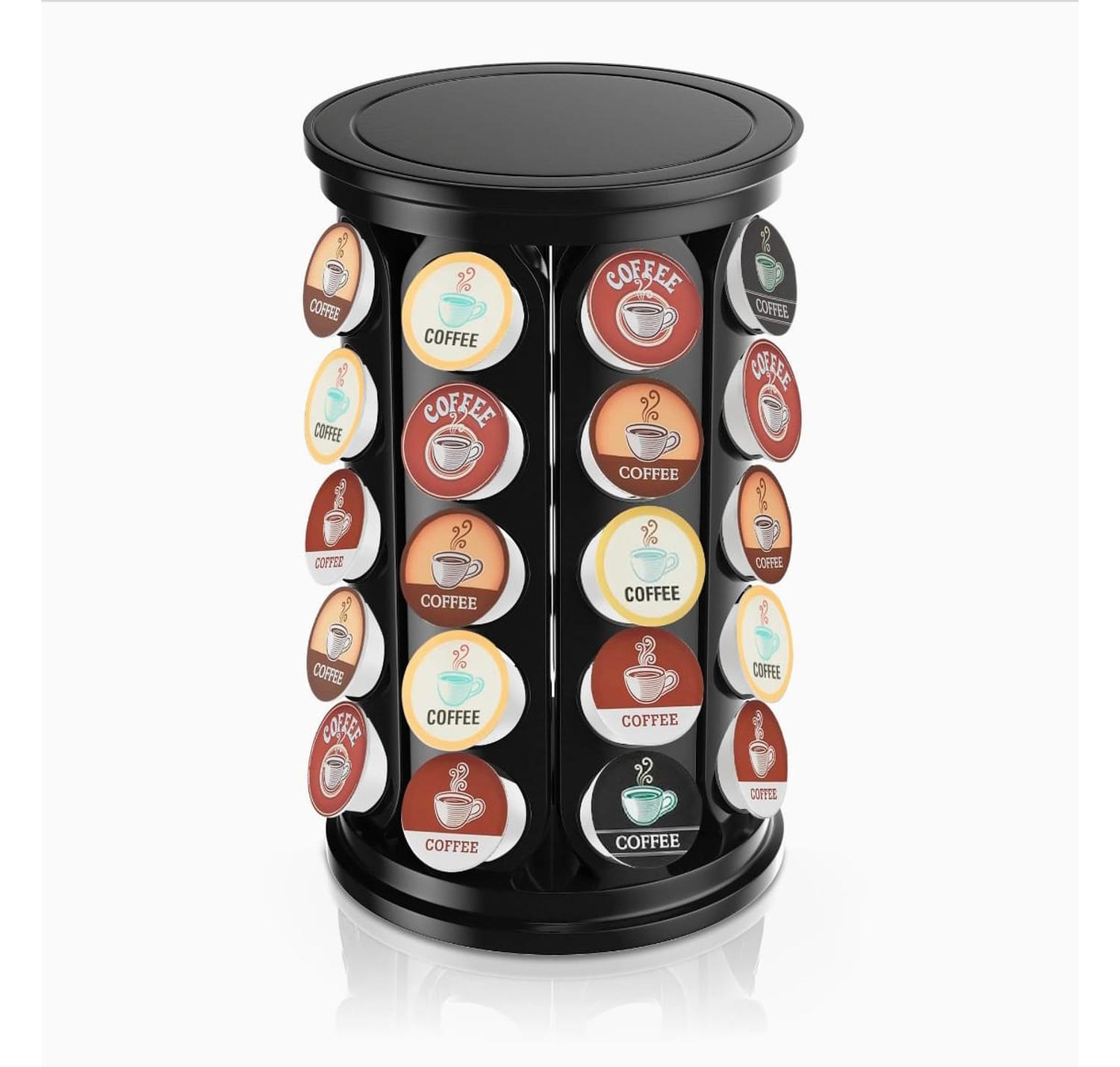 Diseño de rotación suave de 360°: este organizador de cápsulas de café cuenta con una base totalmente giratoria, lo que permite un fácil acceso a tus cápsulas de café favoritas desde cualquier ángulo. Perfecto para una selección rápida y una encimera sin desorden.\nAlmacenamiento espacioso y compacto: capacidad para hasta 40 cápsulas de café, manteniendo tu cocina organizada mientras ahorra espacio. Ideal para los amantes del café con una variedad de sabores y mezclas.\nCompatibilidad universal: Diseñado para adaptarse a las marcas de cápsulas de café más populares, y más. Una solución versátil para todas tus necesidades de almacenamiento de café.\nDiseño de montaje permanente: Una vez montado, este soporte para cápsulas está diseñado para ser no desmontable, asegurando estabilidad y durabilidad duraderas. No te preocupes por piezas sueltas o reensamblaje frecuente\nConstrucción duradera y elegante: Hecho de materiales ecológicos de alta calidad, este soporte para cápsulas es resistente y visualmente atractivo. Su elegante diseño complementa cualquier decoración moderna de cocina.\nFácil de montar y limpiar: fácil de armar y mantener, este organizador giratorio garantiza un uso sin complicaciones. ¡Mantén tus cápsulas de café perfectamente almacenadas y listas para preparar en cualquier momento!