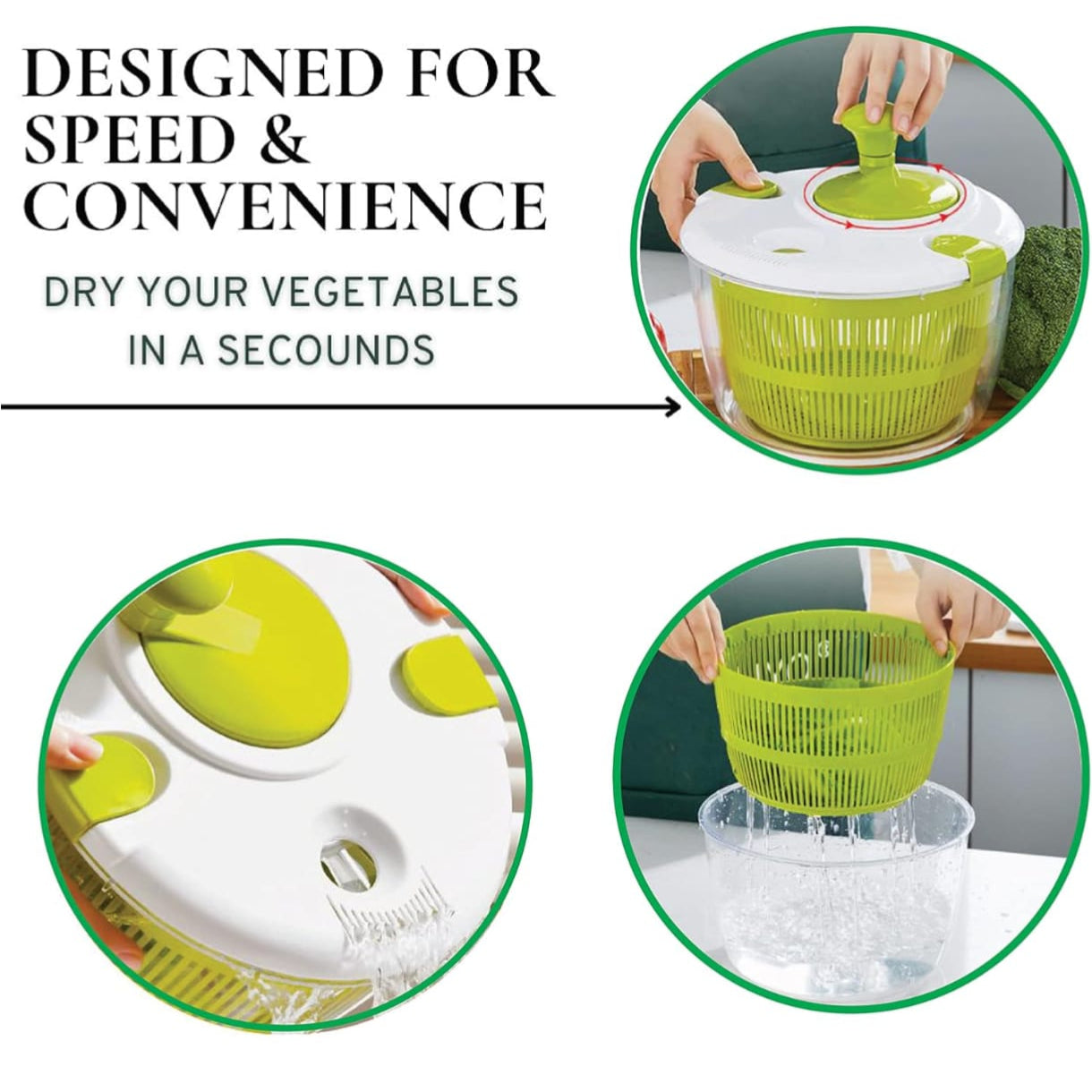 Fácil de usar: convierte la tarea en placer y haz que tus ensaladas sean más sabrosas. Olvídese de lavar la lechuga de gemas a mano, secar la ensalada picada con toneladas de toallas de papel, rociar agua por toda la cocina y ensaladas suaves y acuosas. Nuestro mango giratorio fácil hace que girar sin esfuerzo, por lo que puedes disfrutar de la comodidad de una ensalada rápida, sin desorden y sabrosa.