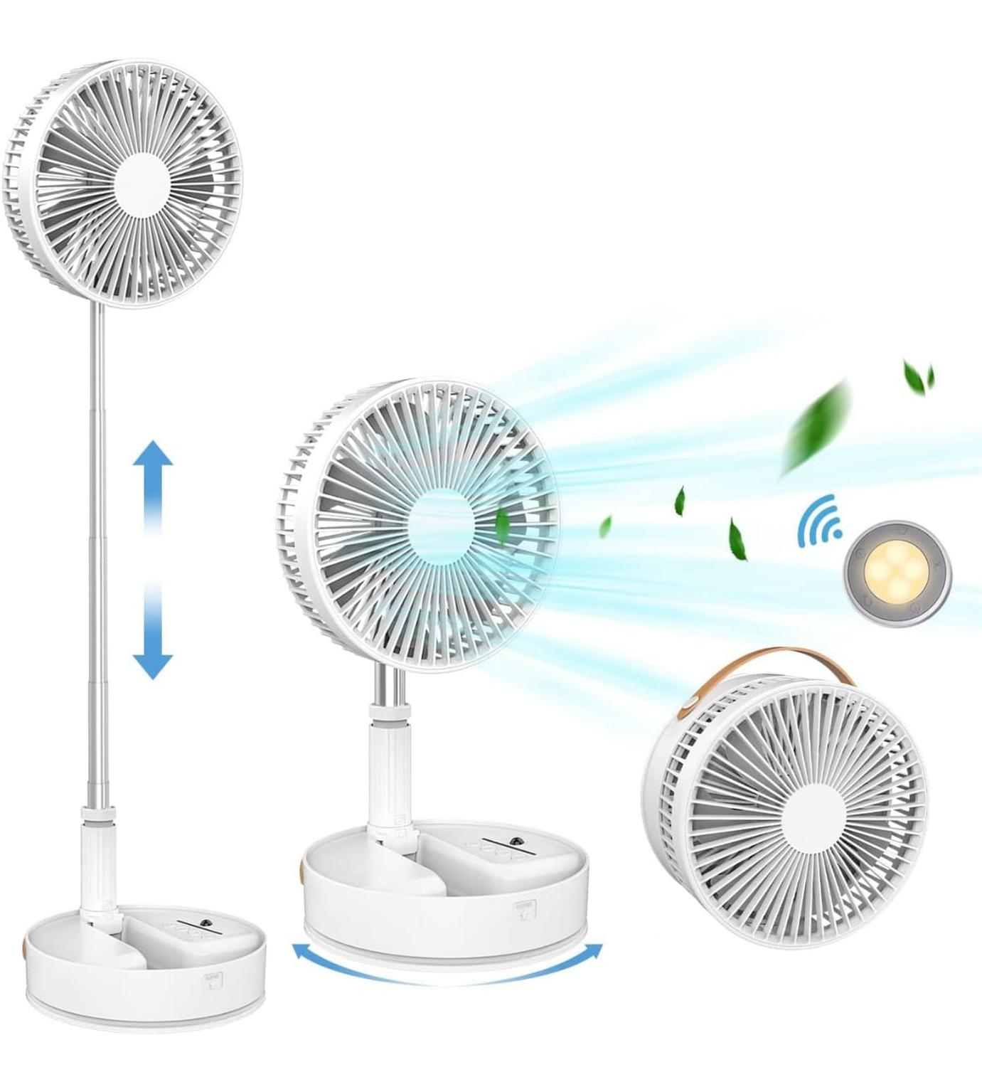 Este ventilador portátil plegable está diseñado específicamente para satisfacer las necesidades de movilidad de los usuarios, combinando un alto rendimiento con una conveniencia excepcional. Con un innovador diseño telescópico y plegable, este ventilador puede utilizarse tanto como ventilador de escritorio como de pie, ajustando su altura según tus necesidades y aprovechando al máximo el espacio disponible. Su grosor plegado es mínimo, lo que permite guardarlo fácilmente en una mochila, maleta o cajón, ideal para actividades al aire libre, viajes y acampadas, brindándote una brisa fresca dondequiera que vayas. Para los usuarios que necesitan mover el ventilador con frecuencia, esta es la elección perfecta, ya sea en casa, en la oficina o mientras estás de viaje.\n\nEl ventilador incorpora una batería de litio recargable que se carga a través de un puerto USB, lo que te permite conectarlo fácilmente a un cargador de teléfono, ordenador o power bank, proporcionándote un suministro de energía continuo sin depender de enchufes. Con una sola carga completa, el ventilador puede funcionar durante varias horas de manera continua, siendo una excelente opción para largas jornadas fuera de casa. Su función de ajuste de velocidad te permite elegir entre diferentes niveles de ventilación, ofreciéndote desde una suave brisa hasta un flujo de aire más fuerte, adaptándose a tus necesidades en cualquier situación.\n\nEl ventilador utiliza tecnología avanzada de reducción de ruido, funcionando casi en completo silencio, lo que lo hace ideal para entornos donde se requiere tranquilidad, como oficinas, dormitorios o habitaciones de bebés. Su potente motor, junto con las aspas diseñadas para optimizar el flujo de aire, garantiza una brisa potente y al mismo tiempo silenciosa. Ya sea que lo utilices en casa para disfrutar de una comodidad silenciosa o durante actividades al aire libre en busca de frescura, este ventilador ofrece un rendimiento confiable y una experiencia portátil incomparable.